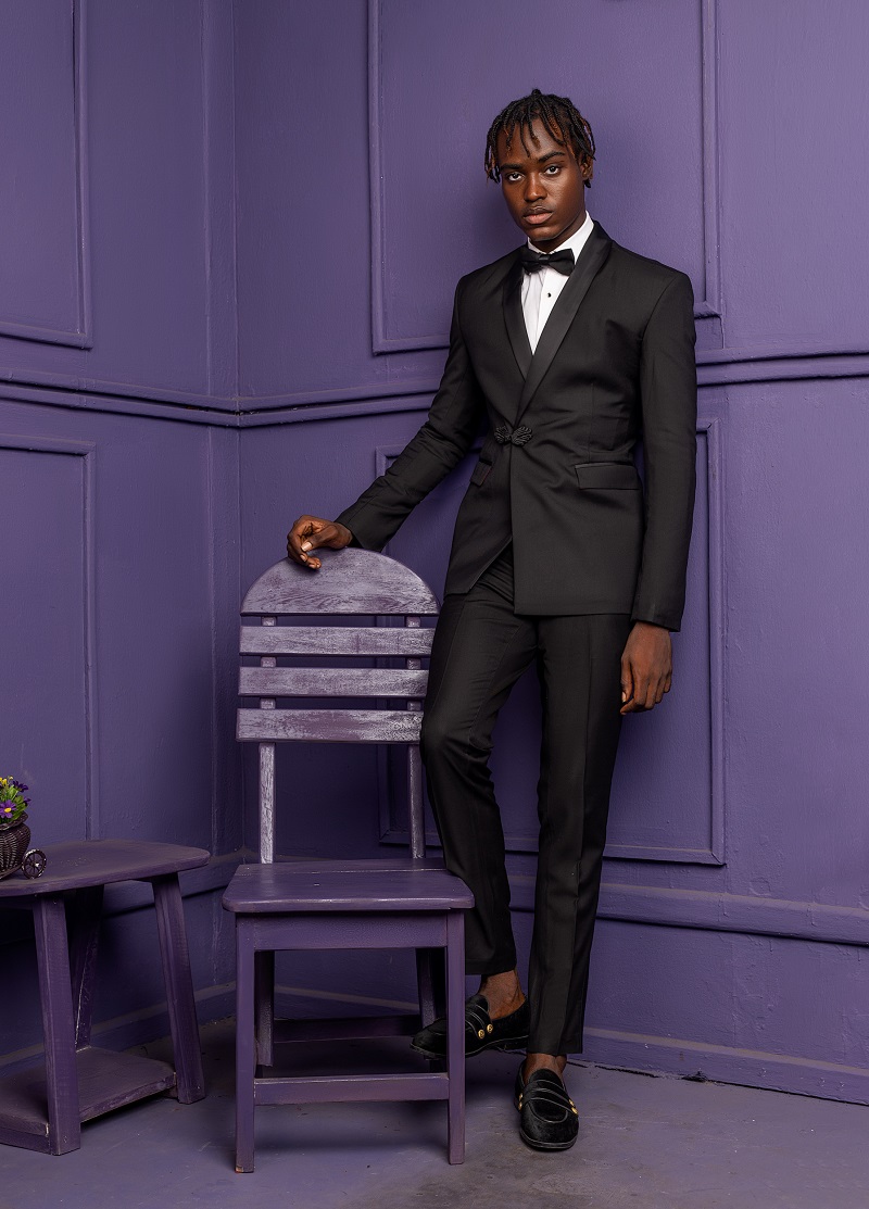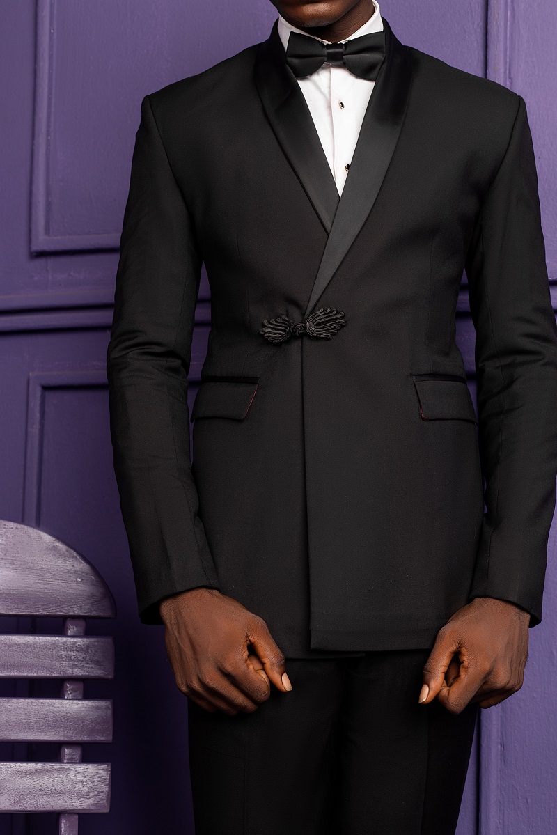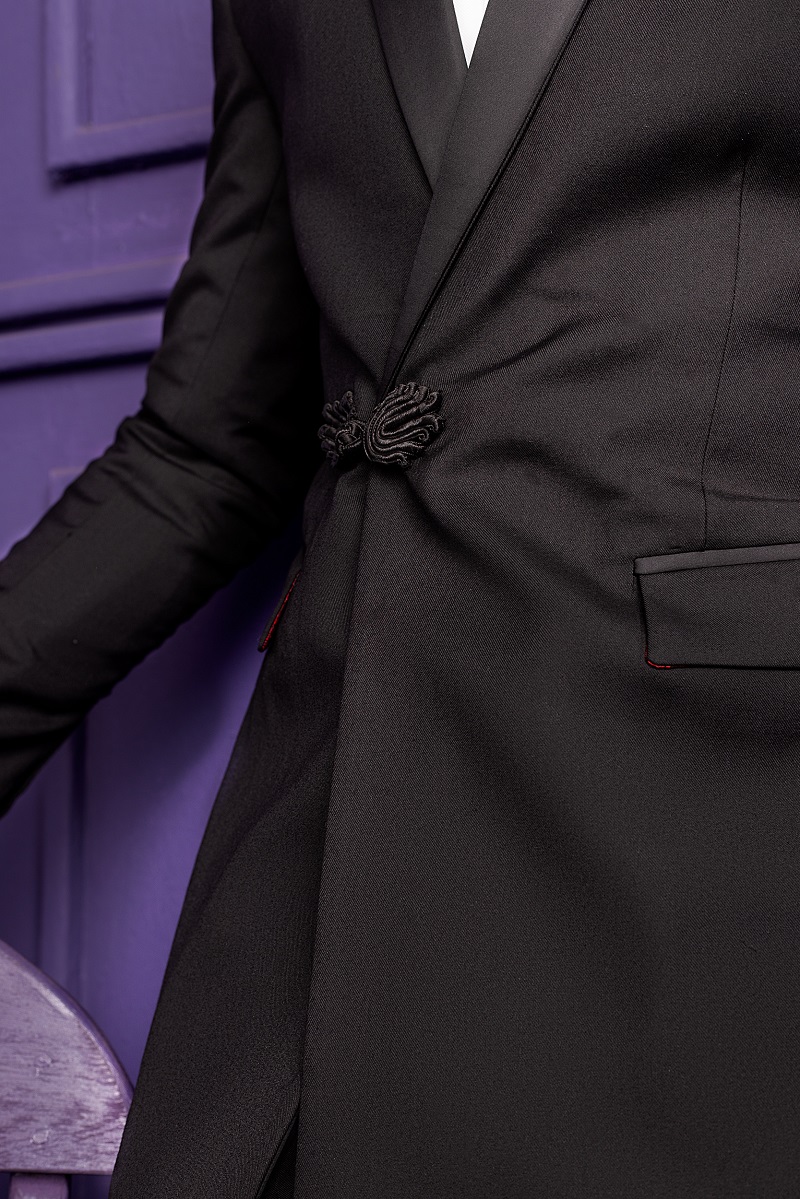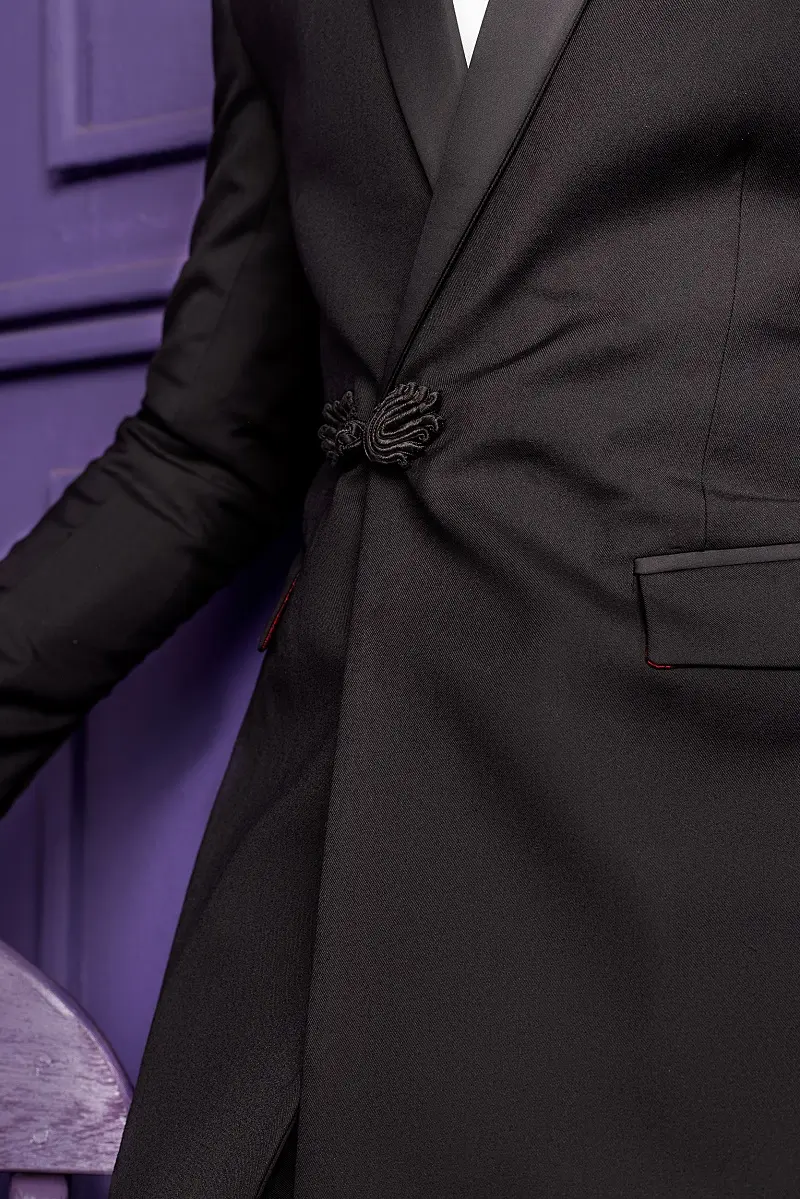 Black Wool double-breasted tuxedo suit with Chinese buttons