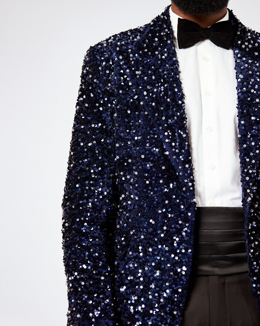 Embellished Midnight Blue Sequins Peak Lapel Suit